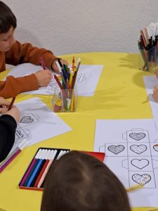 Petits et grands se sont mélangés pour vivre un moment de création et de partage autour d’un projet commun : la réalisation d’un cube « cœur ».